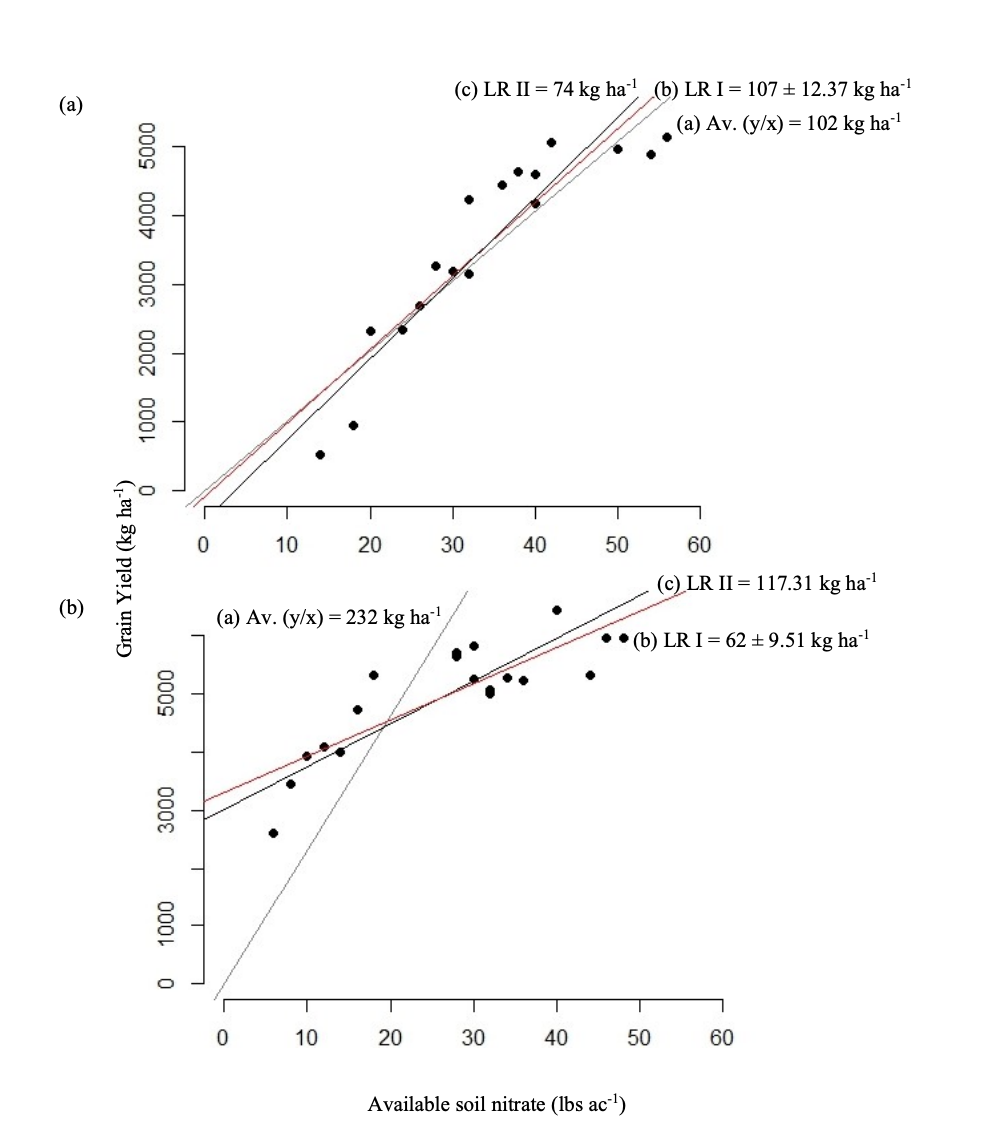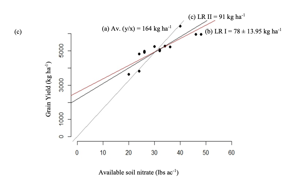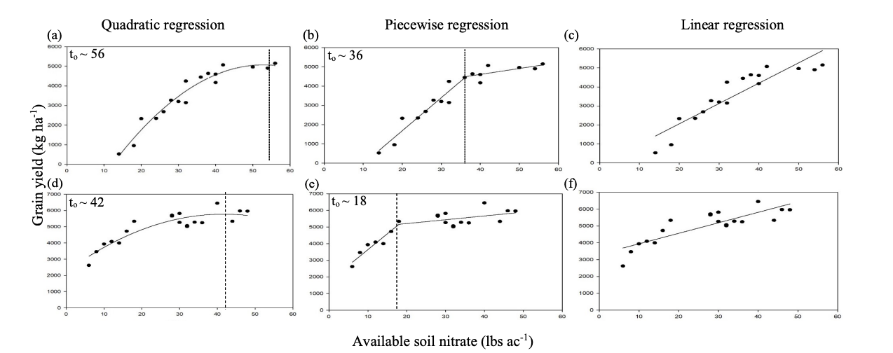 Statistical and practical limitations can hamper the accurate assessment of NUE. Defining NUE as a ratio of grain yield to any measure of nitrogen here, available soil nitrate (AN) is deceptively simple and can lead to inaccurate or misleading conclusions. This project investigates the statistical challenges inherent in treating NUE as a ratio by comparing its behavior under different analytical and regression models. By examining ratio-based analyses alongside linear, quadratic, and piecewise regression approaches, we aim to identify the most reliable method for estimating NUE. Ultimately, we ask: Given the limited availability of plant-accessible soil nitrogen and the high cost of synthetic fertilizers, how can NUE be measured in a way that is both statistically sound and agronomically meaningful?